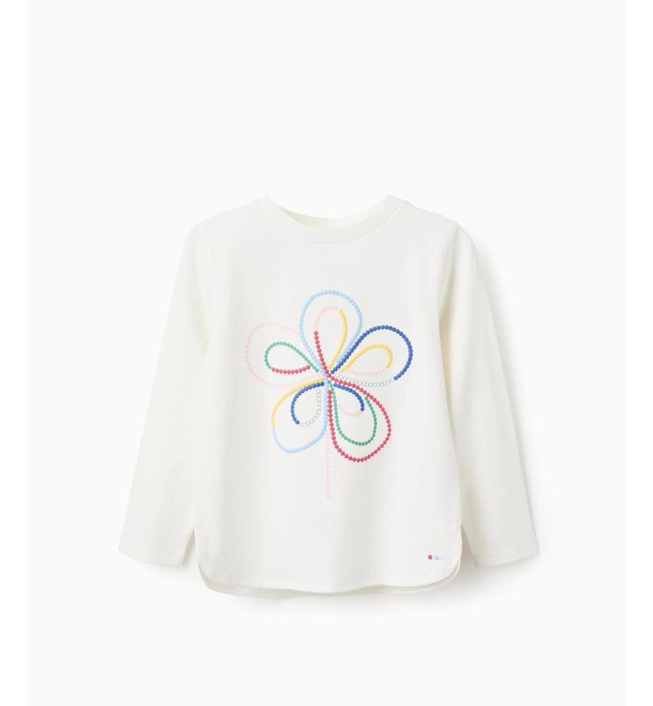 camiseta de nña blanca con flor de colores